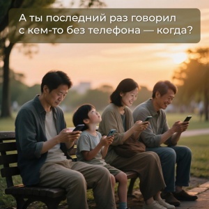 📱 В парке — люди рядом, но каждый в своём мире уведомлений.🔕 На скамейке — тишина, нарушаемая только звуком телефонов.😂 В кафе — смех, но не тот, что от сердца.⌨️ А сколько из нас сидят рядом — и пишут в чаты?